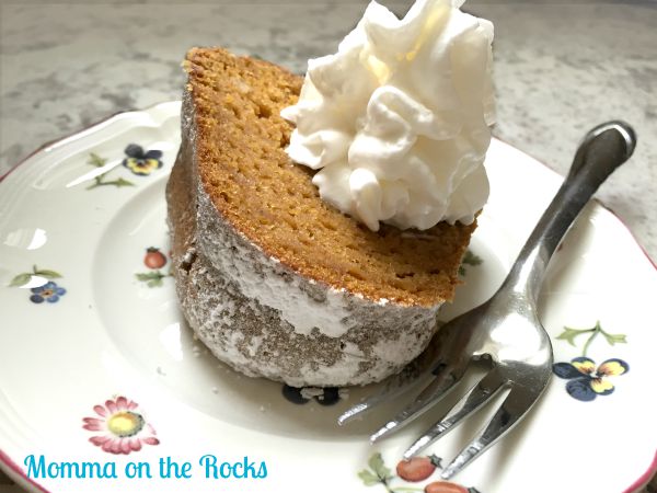 It’s one of my go-to recipes when I want pumpkin cake but I’m not in the mood to grease and dust mini pans for my pumpkin bread. This particular cake is a bit dense, heavy on the pumpkin taste, gently touched with cinnamon and finished off with a squirt of whipped cream. I promise it’s yummy!