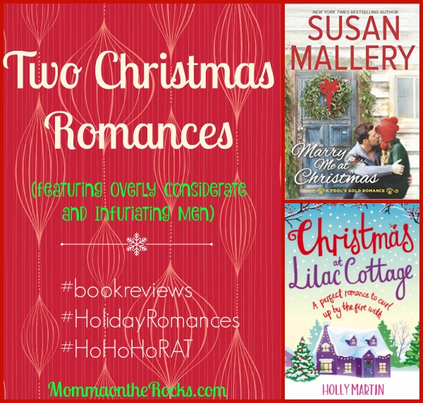 I’ll be honest: I could have (and should have) titled this post “Two Christmas Romances featuring Overly Considerate and Infuriating Men” because the main male characters in each spend a lot of the book fighting against their feelings because they want to protect the main female characters from getting their hearts broken – by them.