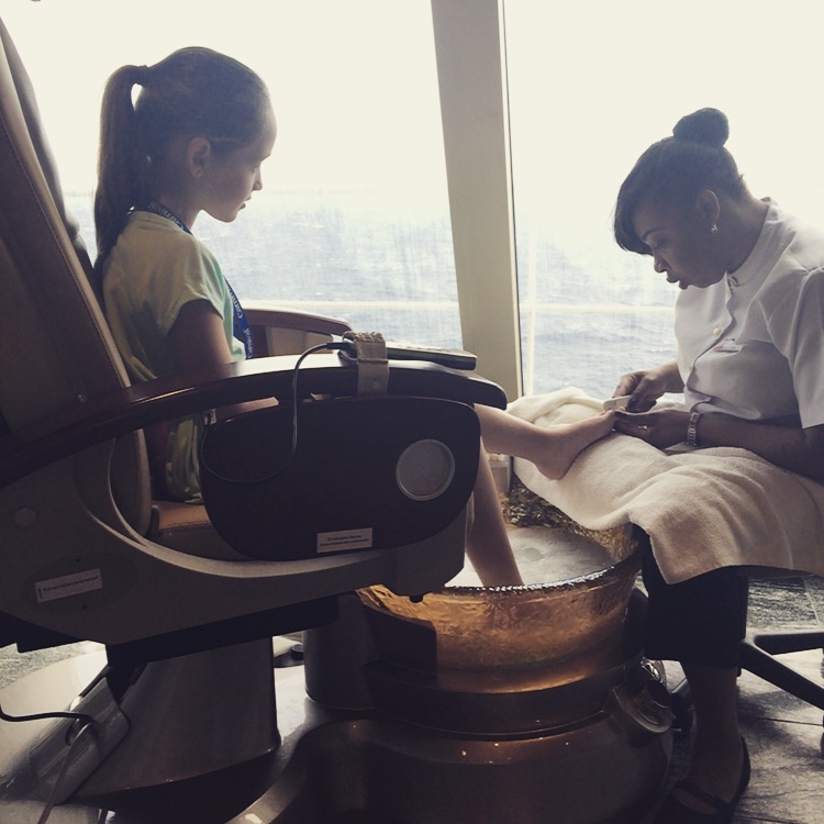 Bad weather hindered dropping anchor in Belize, but the crew was quick to put together a full entertainment schedule for the ship as we plowed on to Cozumel. It was disappointing, but I’m always a fan of safety first – and appreciate the honesty with which Malcolm addressed the questions on the situation at a later Q&A session. Since the Belize day was Miss M’s 10th birthday, we were quick to head to the spa to book her a special birthday mani-pedi instead.