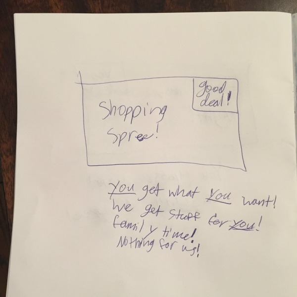 Saving the best for last, Miss M handed me a coupon book she had created herself. It’s definitely all her if it is lacking her usual glitter and neon. On the inside cover was a message stating that the coupons never expire AND I may use any and all of them as many times as I’d like. Flipping through them, it struck me how well she pays attention, such as how whenever I take them shopping, I typically get something for everyone but me (mostly because by the time they are done with their shopping, they are DONE). Whatever the reason, it has resulted in a “pick out whatever you want and we’ll pay”.
