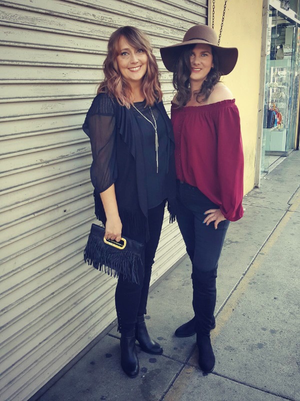 While there was nothing “low key” about the weekend, Saturday was the more casual in terms of dress. I was outfitted in something my 20s (wannabe) rock and roll self adored, while Michelle had a fun “boho” look.