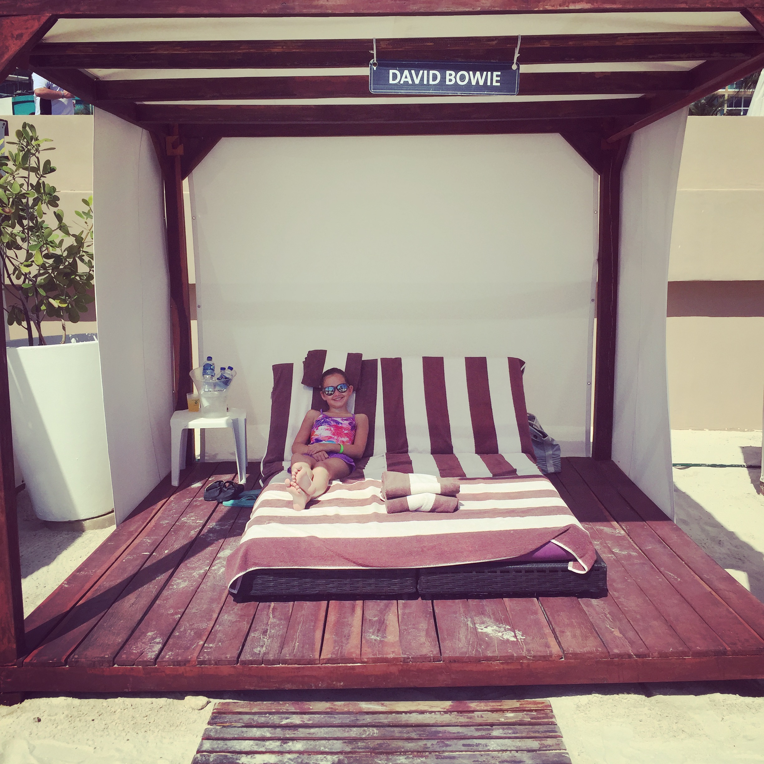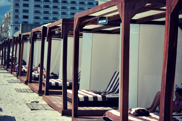 Also available on the beach were cabanas, which features comfy dual reclining beds and great service (and of which we took advantage of those resort credits to book one for Miss Thing’s birthday.) They said they would give her a “Rock Star Day” and they did! There was an ice bucket full of wine and water bottles and even a mister of Evian in case the princess got too hot. They brought us food and drink – all we had to do was ask.