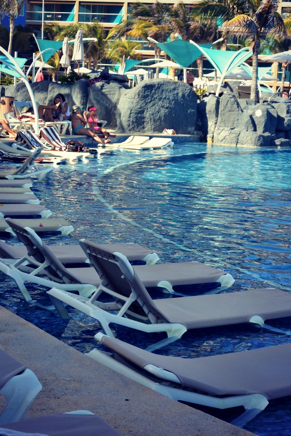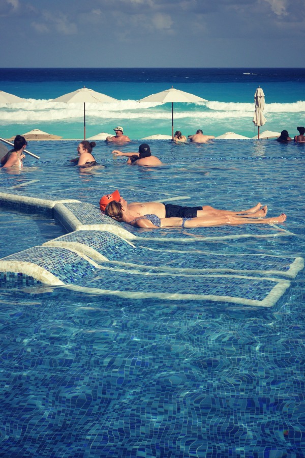 The pools and spas were gorgeous! There is a beautiful freestyle infinity pool which spans the width of the resort. It curves into an arch, and at each end there is a swim up bar. It’s also bordered with a tanning ledge on which more lounge chairs sit, letting you rest just in the water if you like.