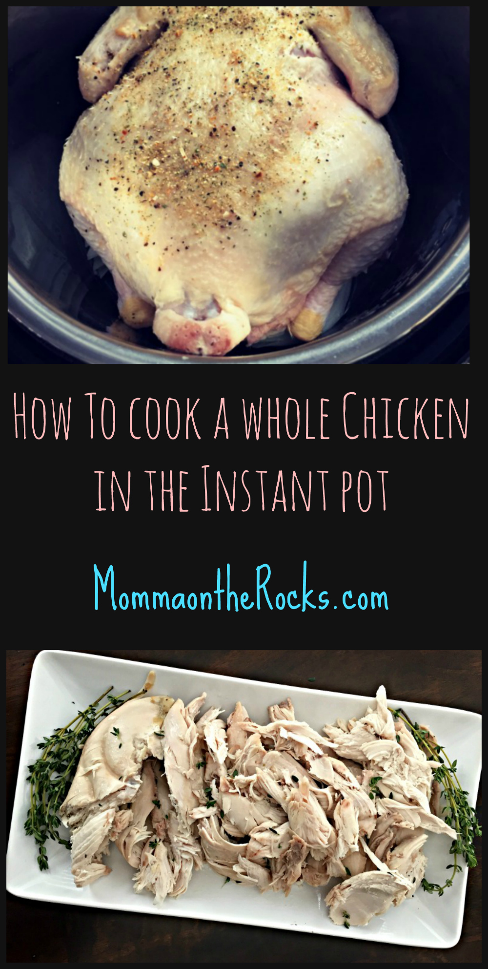 Carefully place the chicken on top of the rack. A whole 4-pound organic chicken just fits inside my 6-quart Instant Pot when resting on the rack.