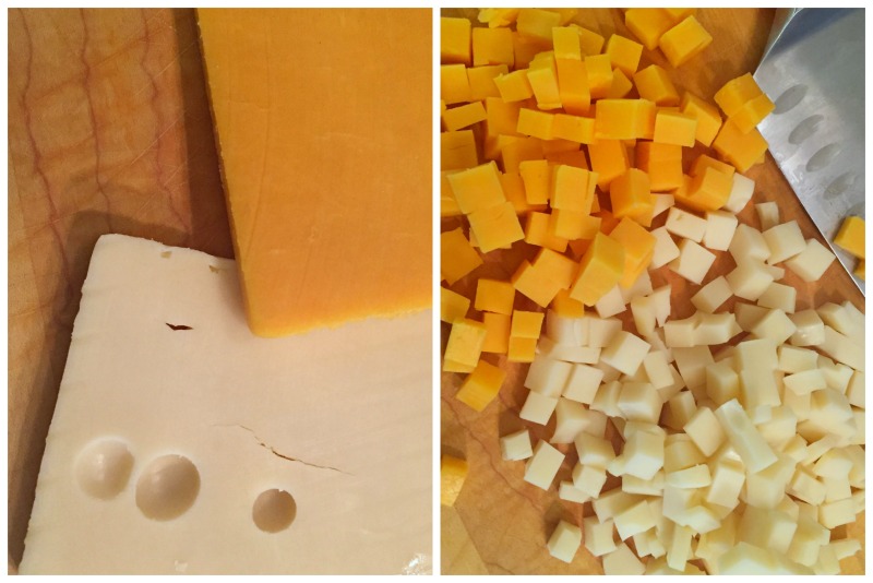 The amounts of cheese it requires are odd, and it really needs to be made with cubed cheese and not shredded. My time and wallet saving trick is to visit your deli counter and ask your friendly deli person to cut you the thickest slice of cheese that his machine can make. I’ve found that mine can cut me a 4-ounce slice if it is from a larger block of cheese!