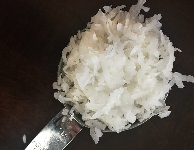 Measure out 1/3 C sweetened flaked coconut.